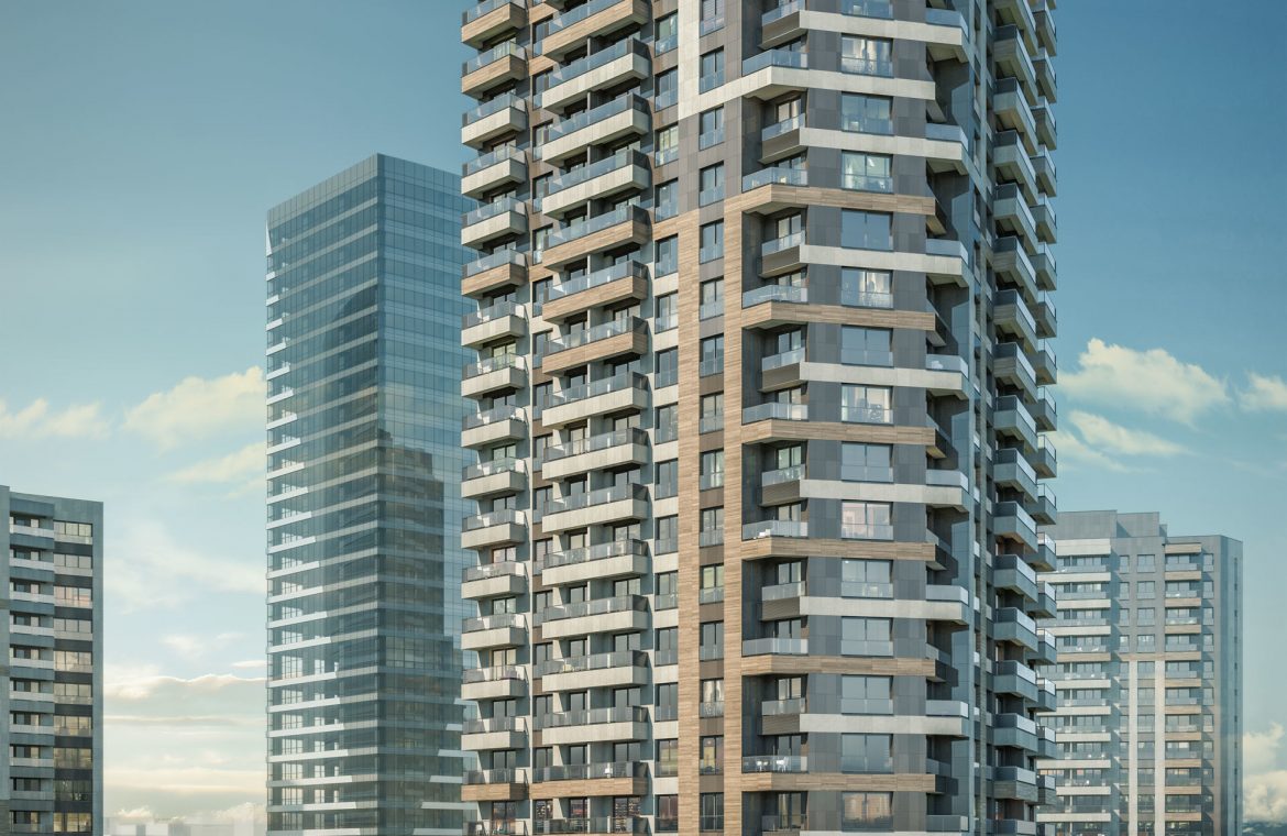 NIDAPARK KÜÇÜKYALI project consists of 6 towers (4 residential towers – and two office towers), the number of residential apartments is 1409 apartments and 120 commercial stores. The number of floors in the towers ranges between 19-22 floors of each tower