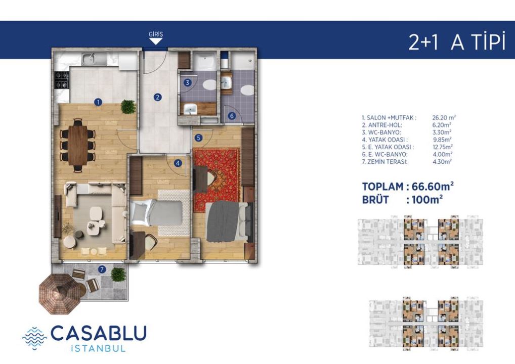 CASABLU project is one of the marine projects that is characterized by its charming views of the Marmara Sea, which is only 1.3 km from the project, which gives comfort and psychological housing for its residents.
